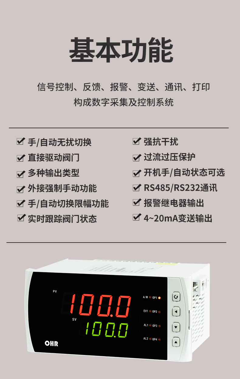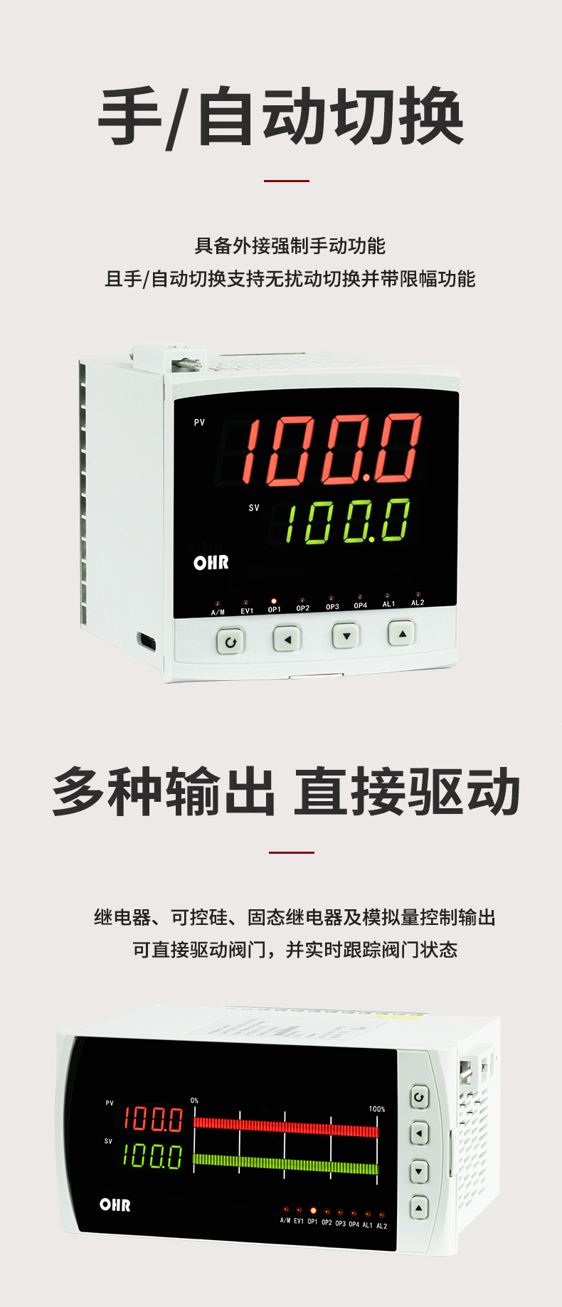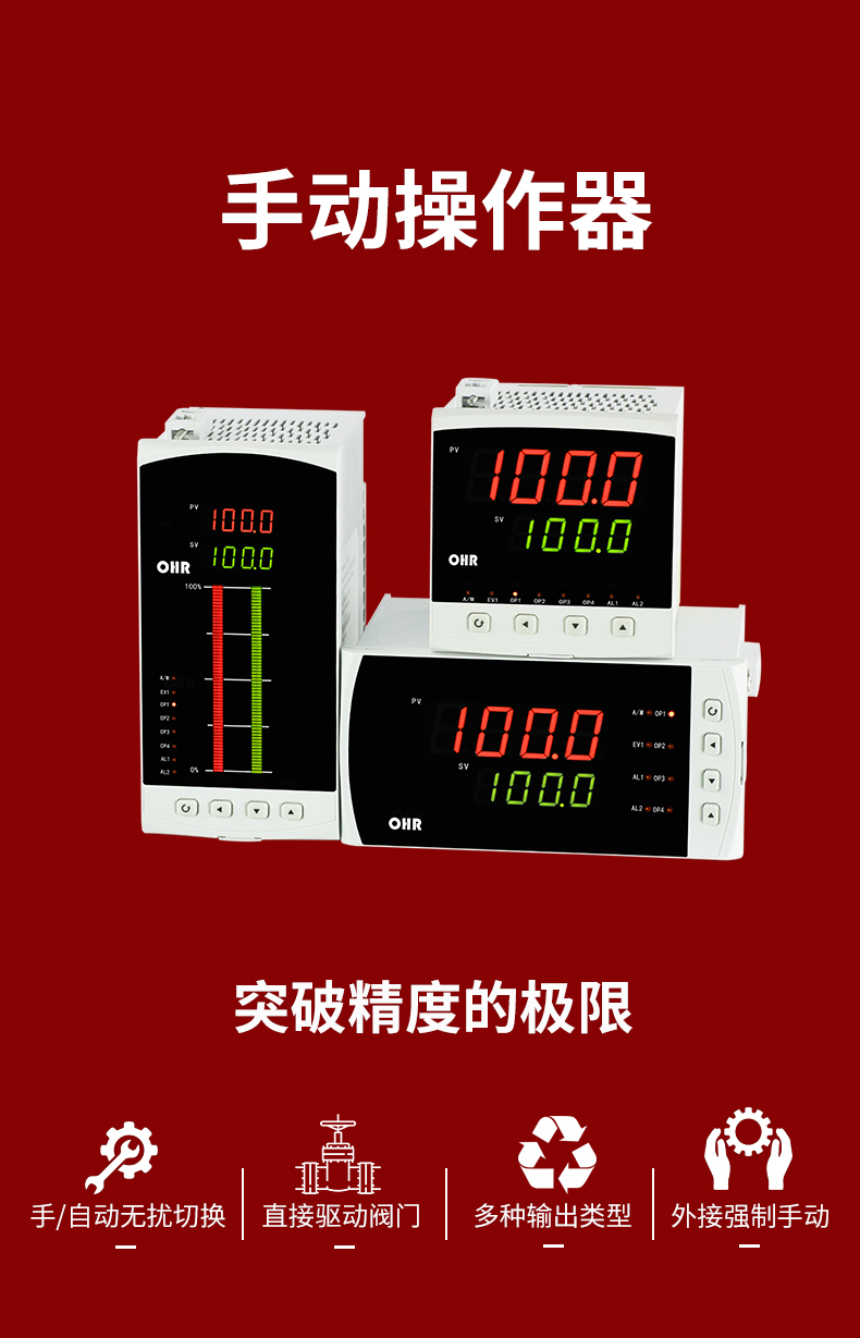 OHR-E500系列手動操作器適合作為DCS系統回路調節控制輸出和智能調節器控制輸出的備用操作器使用,可同時輸入和顯示給定信號和反饋信號,可與各類傳感器、變送器配合使用。