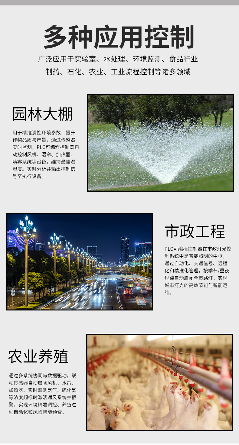 虹潤公司是專業生產PLC控制器的國家專精特新“小巨人”企業。生產的簡易PLC控制器,具有全隔離設計,中文編程,專業邏輯控制與時間,梯形圖編程方式,遠程RS485通訊監測等特點。產品獲得智能化控制器、多通道可編程繼電器等2項國家發明專利;主持起草流程工業中電氣、儀表和控制系統的試車以及現場設備工具(FDT)接口規范等2項國家標準,參與國際5G標準制定,取得可編程繼電器等2項相關軟件著作權。產品廣泛應用于工業自動化設備、電氣自動化系統、農業灌溉、包裝機械、印刷機械、樓宇自控等諸多領域