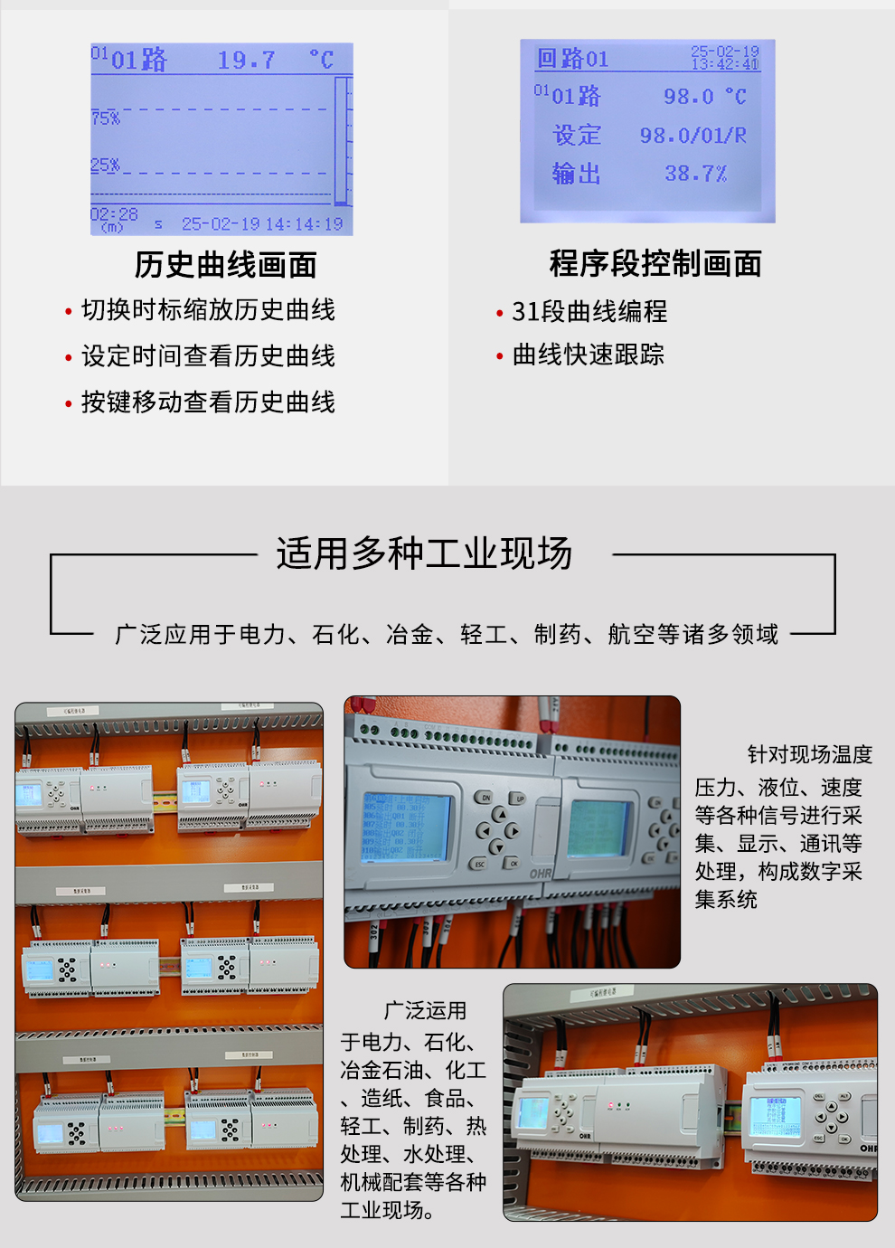 OHR-PR70系列溫度控制器采用真正的人工智能算式,儀表啟動(dòng)自整定功能,可以根據(jù)被控對(duì)象的特性,自動(dòng)尋找最優(yōu)參數(shù)以達(dá)到很好的控制效果,無(wú)需人工整定參數(shù)。控溫精度基本達(dá)±0.1℃,無(wú)超調(diào)、欠調(diào),達(dá)國(guó)際先進(jìn)水平。可帶外給定(或閥位)控制,可取代伺服放大器直接驅(qū)動(dòng)執(zhí)行機(jī)構(gòu);可進(jìn)行編程控制,根據(jù)生產(chǎn)過(guò)程的要求,按照一定的程序曲線進(jìn)行控制,最多可分31段曲線對(duì)控制對(duì)象進(jìn)行監(jiān)測(cè)、控制、記錄與遠(yuǎn)傳。