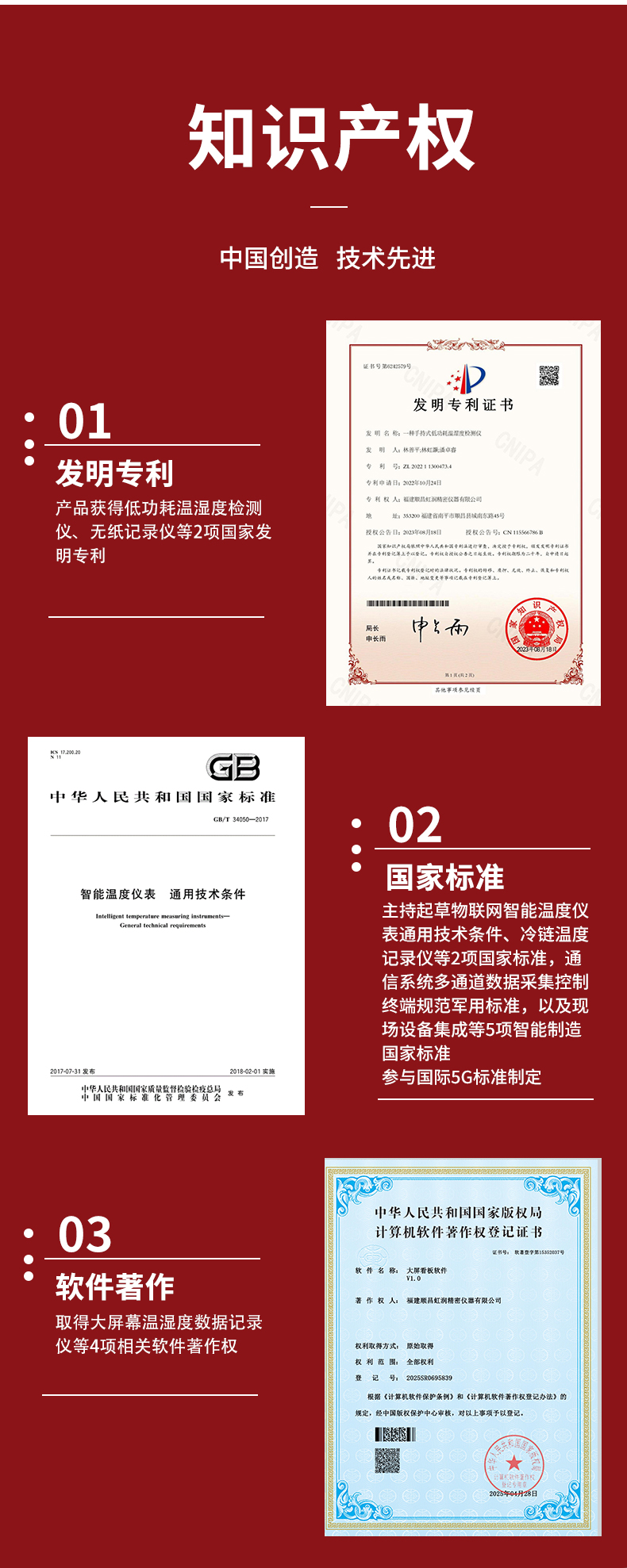 虹潤(rùn)公司是專業(yè)生產(chǎn)環(huán)境監(jiān)測(cè)儀表的國(guó)家專精特新“小巨人”企業(yè)。生產(chǎn)的大屏噪音溫濕度記錄儀,具有高清大屏顯示,數(shù)據(jù)記錄與轉(zhuǎn)存,同步觸發(fā)可靠預(yù)警,RS485或以太網(wǎng)通訊等特點(diǎn)。產(chǎn)品獲得一種手持式低功耗溫濕度檢測(cè)儀、無(wú)紙記錄儀等2項(xiàng)國(guó)家發(fā)明專利,主持起草物聯(lián)網(wǎng)智能溫度儀表通用技術(shù)條件、冷鏈溫度記錄儀等2項(xiàng)國(guó)家標(biāo)準(zhǔn),參與國(guó)際5G標(biāo)準(zhǔn)制定,取得大屏幕溫濕度數(shù)據(jù)記錄儀等3項(xiàng)相關(guān)軟件著作權(quán)。產(chǎn)品廣泛應(yīng)用于電子制造、醫(yī)療科研、倉(cāng)儲(chǔ)管理、畜牧養(yǎng)殖、建筑工程等諸多領(lǐng)域。